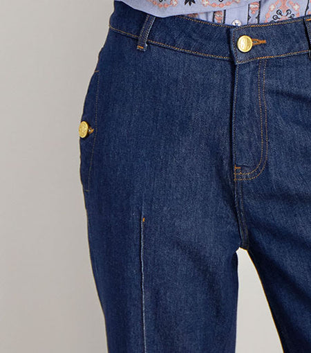 OUR EXPERTISE IS EXPRESSED IN THE FINISHING. BUTTONS ENGRAVED WITH THE HOUSE LOGO, TOPSTITCHING THAT SCULPTS THE LEG, FABRIC CAREFULLY CHOSEN FOR THEIR FIT AND SOFTNESS... EVERY DETAIL COUNTS. DENIM IS NOT A BLANK CANVAS BUT A PLAYGROUND, WHERE EACH DESIGNED LINE ENHANCES NATURAL CURVES.