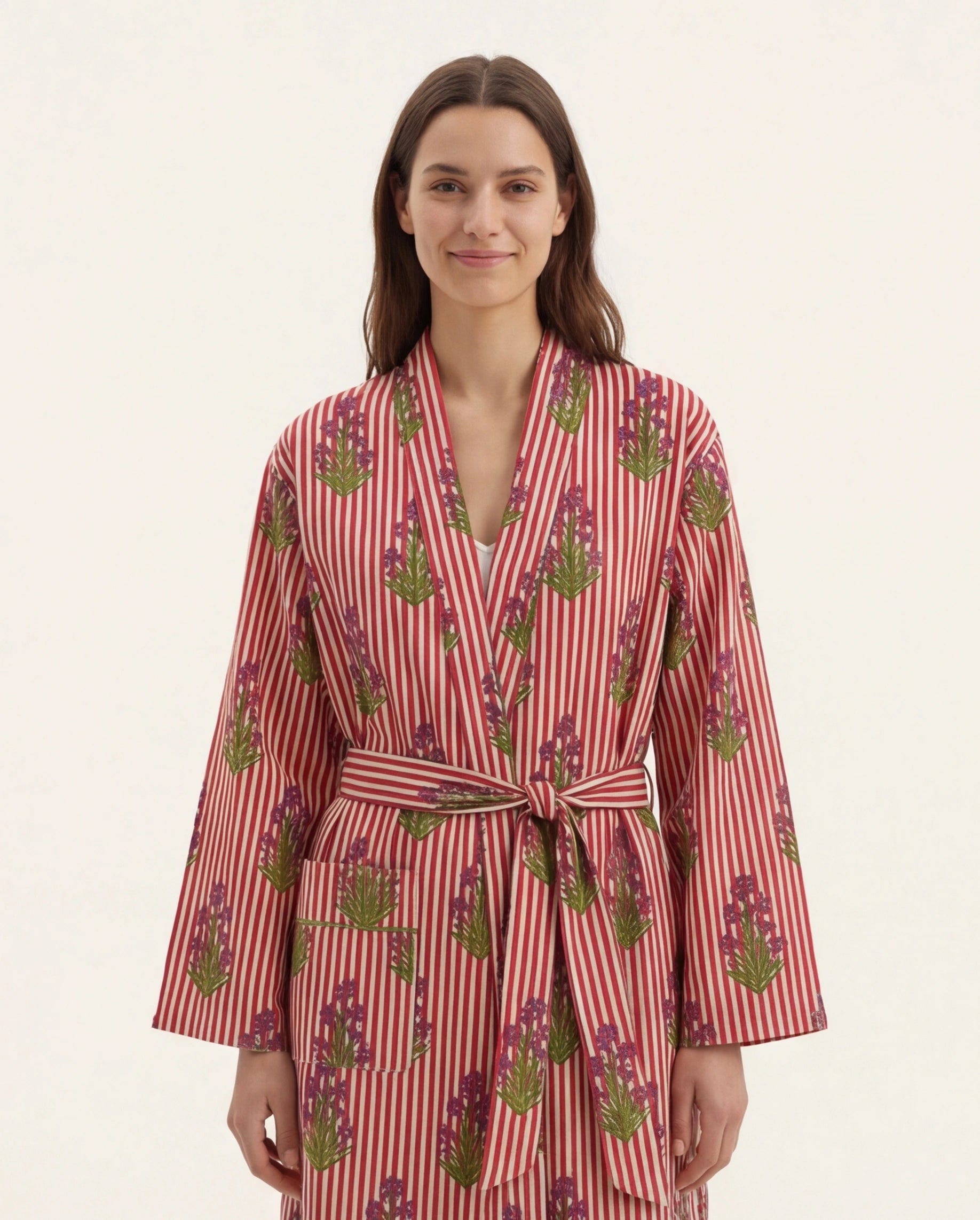 Imprimé rayures & motifs floraux : Un mix délicat d’inspirations indiennes façon bloc print, parfait pour celles qui aiment les pièces originales.