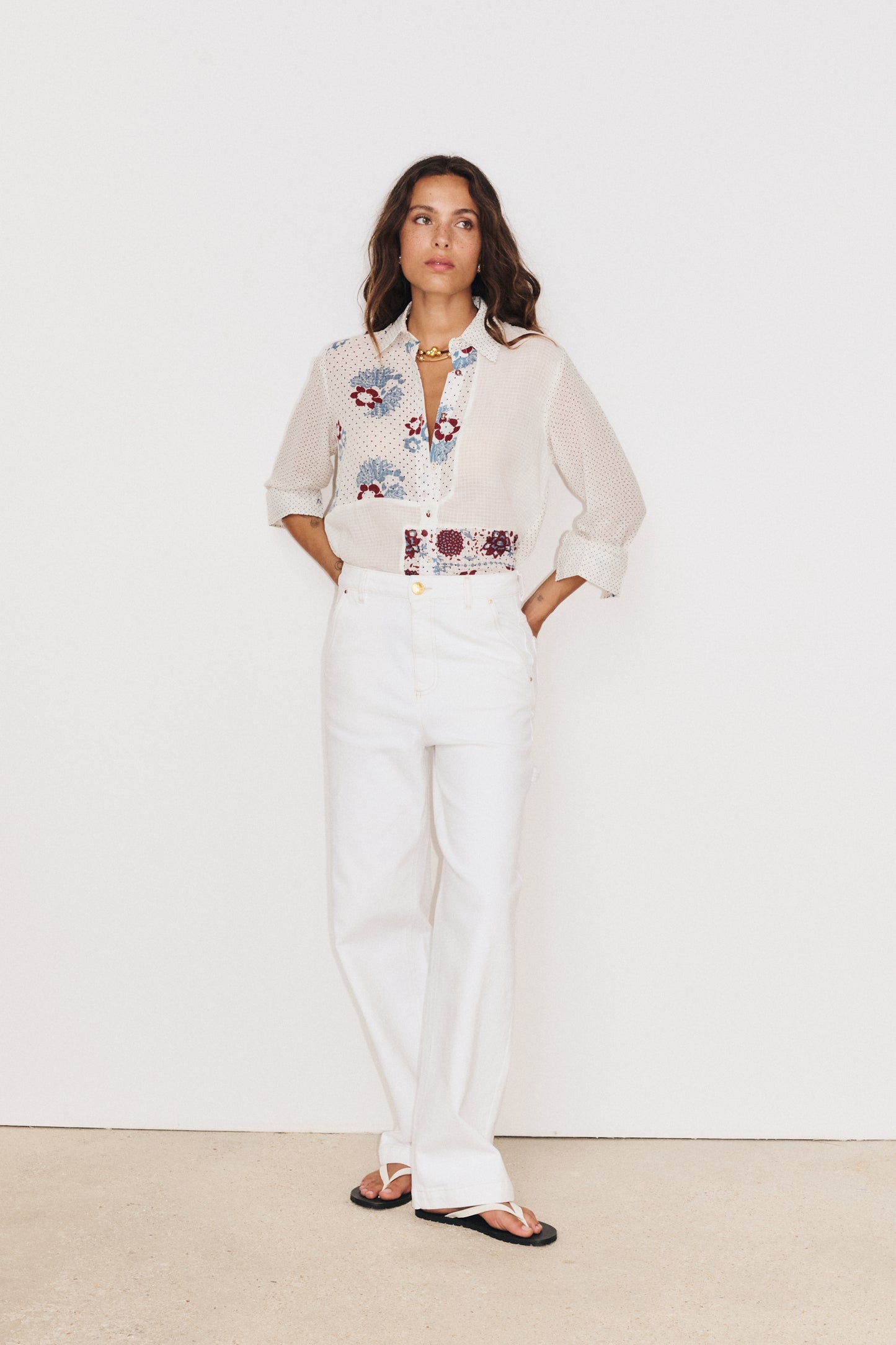 Associez-le à un top féminin ou à une blouse fluide pour équilibrer le côté utilitaire du pantalon. Des accessoires sobres et des chaussures raffinées mettront en valeur le contraste entre style worker et élégance. Se marie parfaitement bien aussi avec la chemise Sunny.