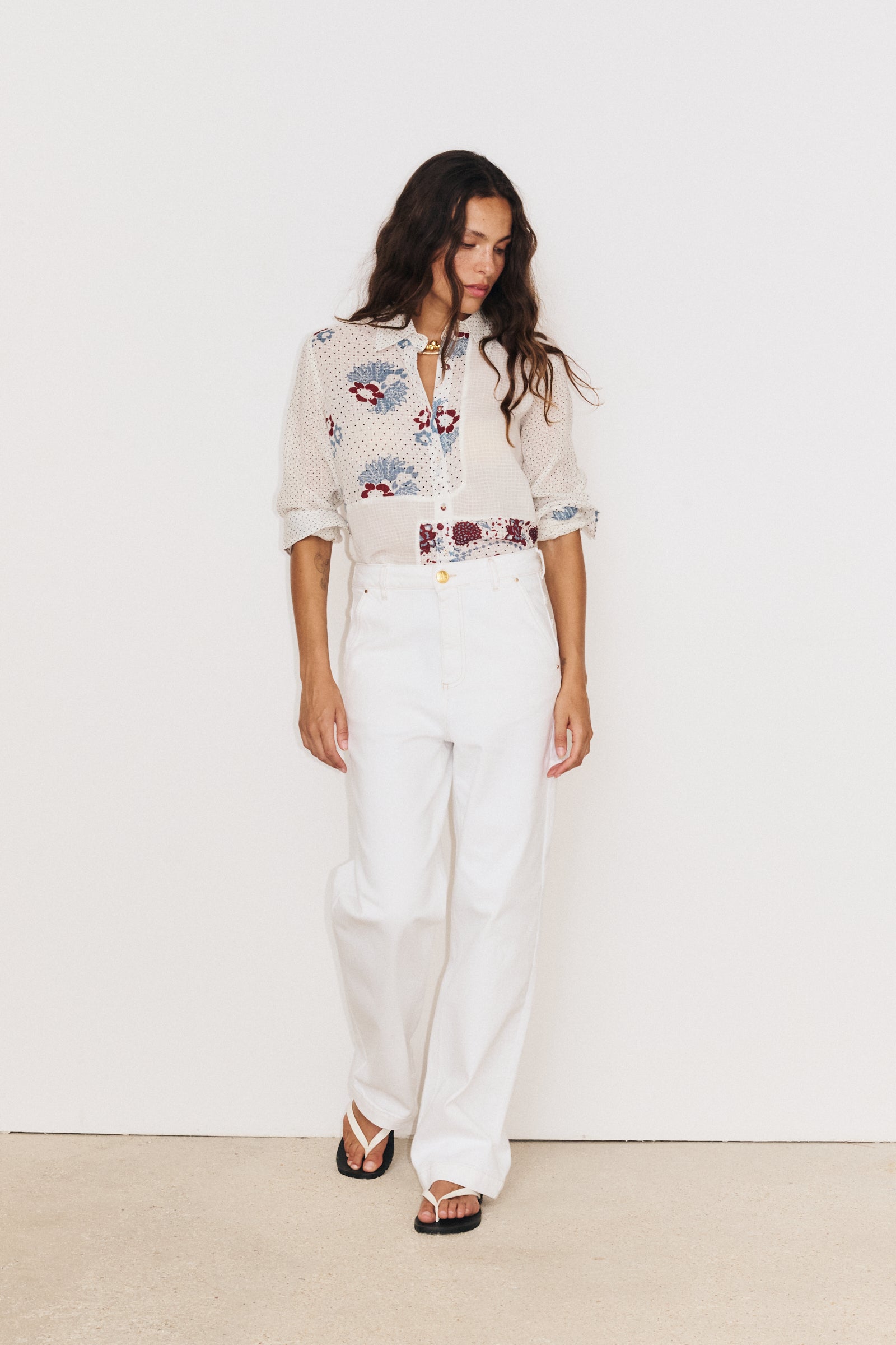 See the lookThe Sunny long-sleeve shirt charms with its patchwork design, creating a unique mix & match effect. Floral prints blend with polka dot patterns to add character to the piece. Its cut follows a classic shirt fit, offering a silhouette that is easy to wear daily. Versatile and modern, it pairs naturally with jeans for a simple, stylish look.