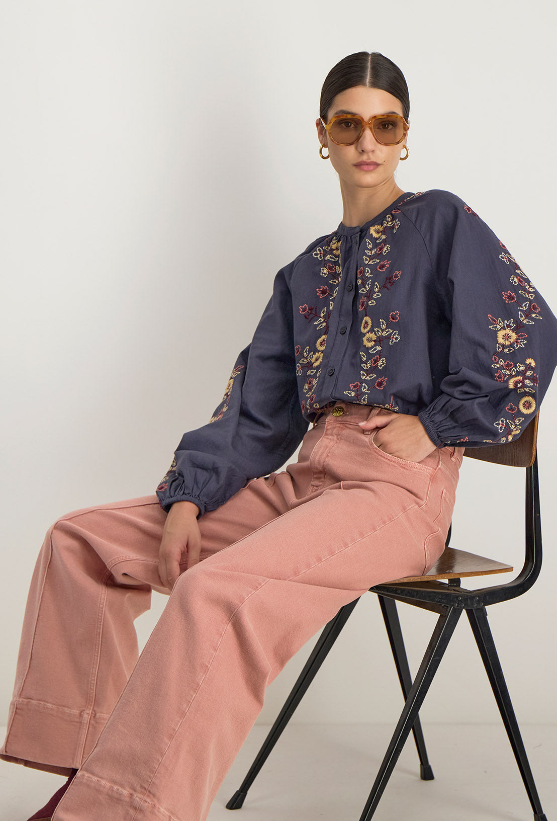 See the lookDelicate and poetic, the Kleo embroidered shirt stands out with its refined details and unique charm.