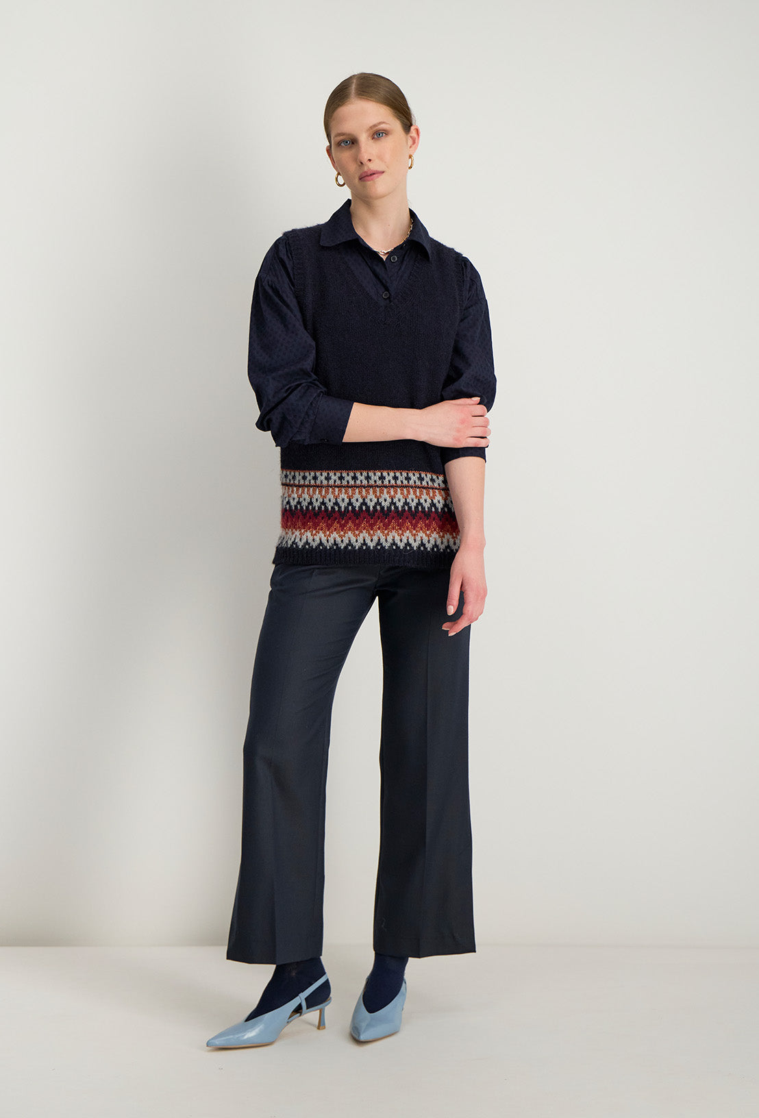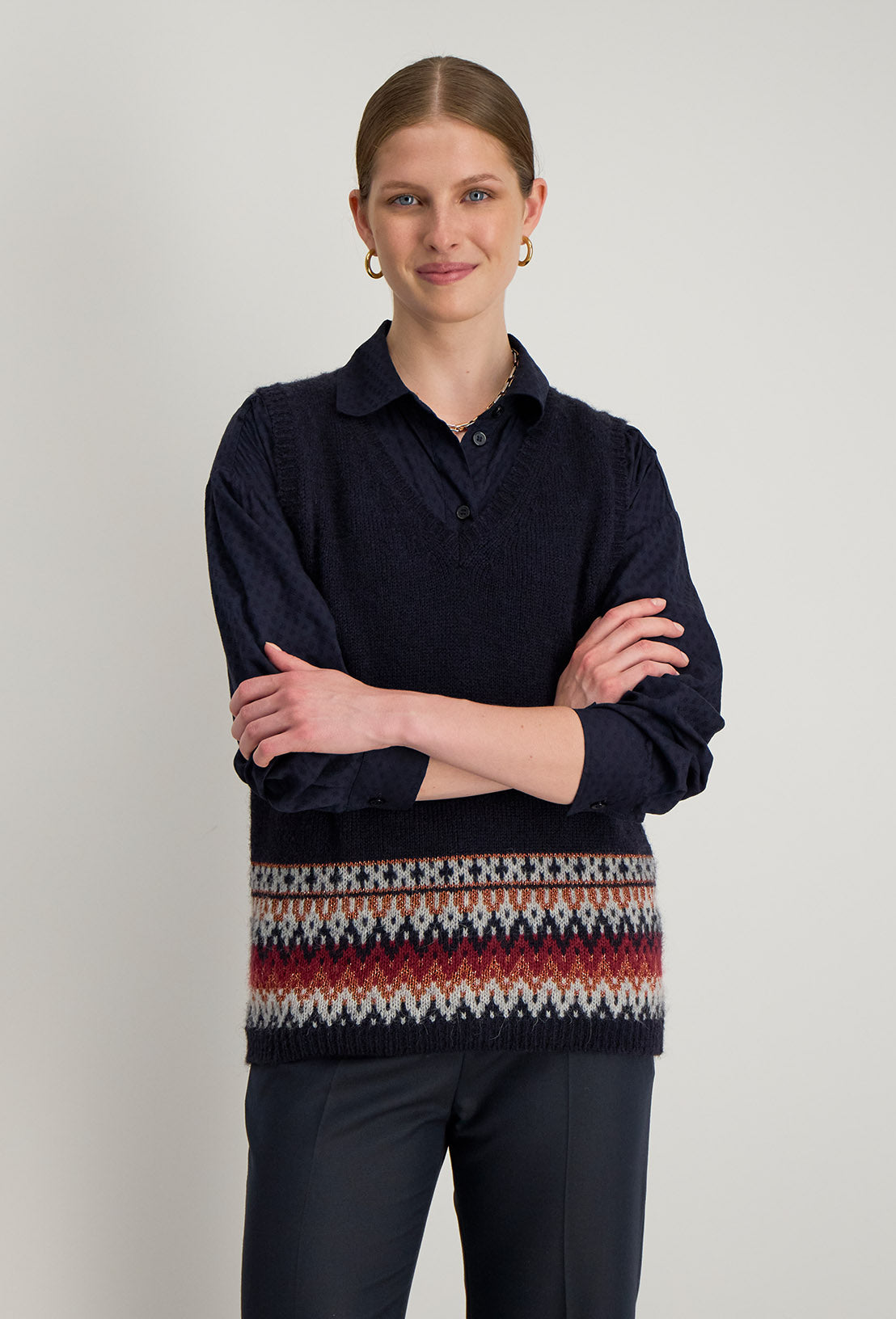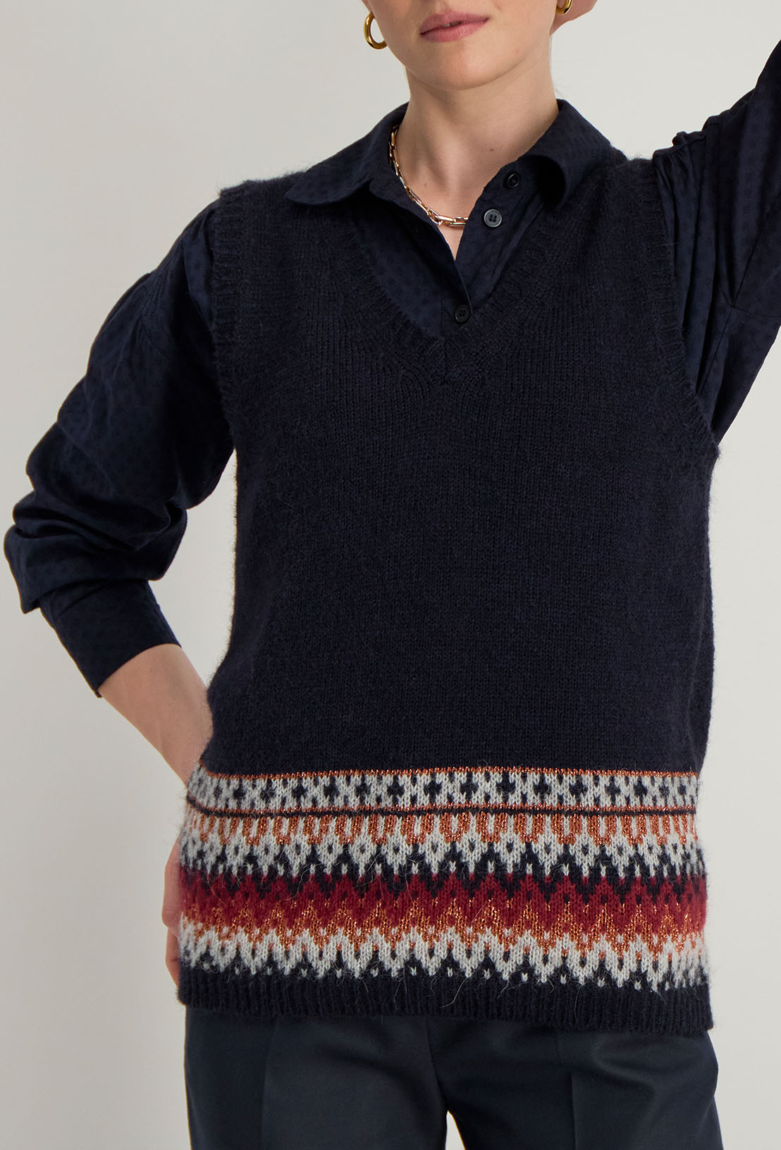 Confectionné en laine, le pull sans manches Viany séduit par son motif jacquard. *Se décline en différents modèles.
