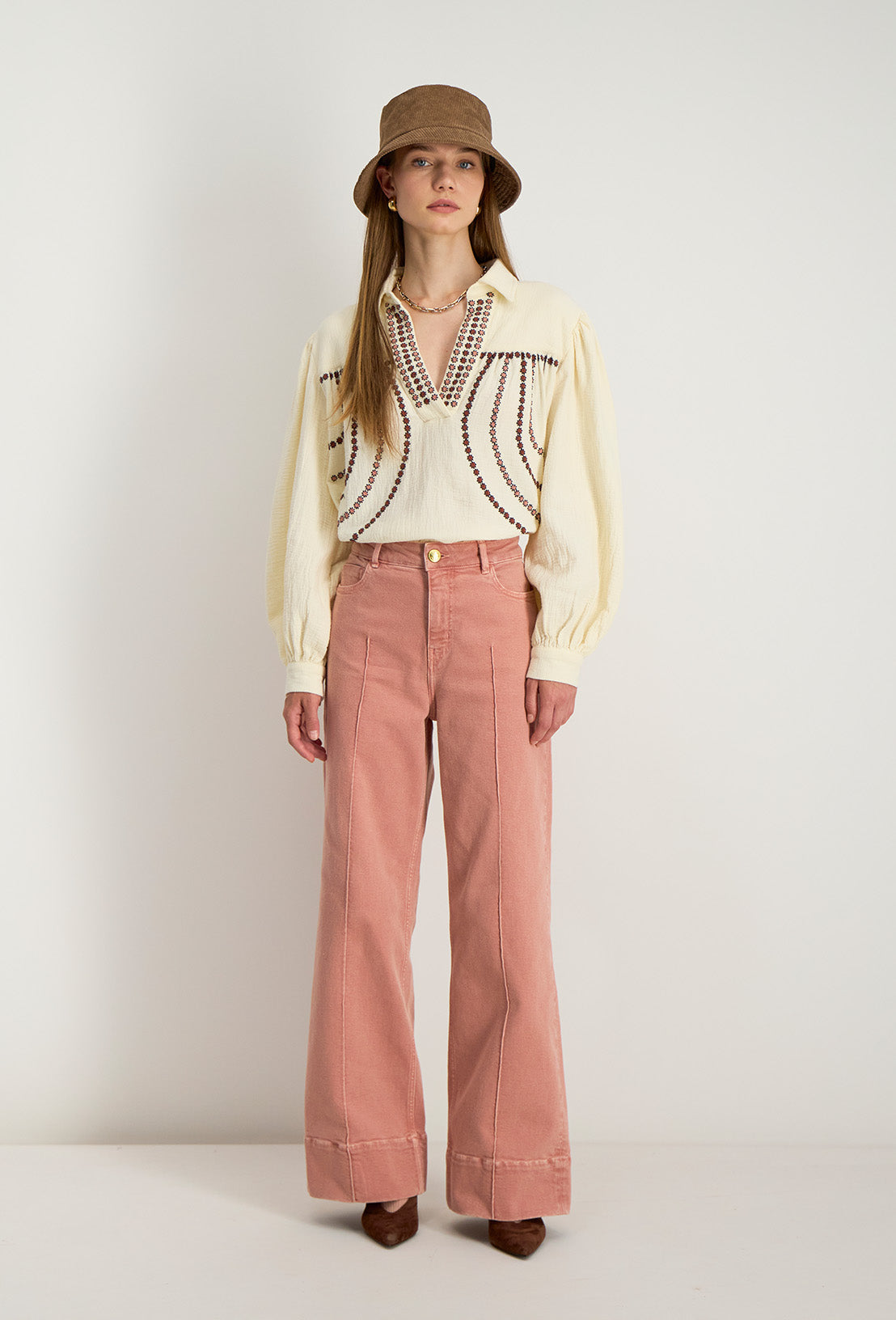 Featuring a charming collar with small ruffles and a cut with armholes, the Iseli shirt is chic and bold.<br/>